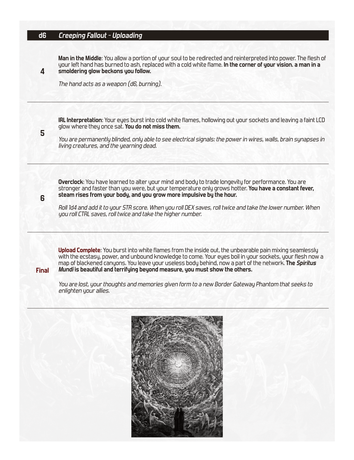 6 Fallouts to corrupt Investigators towards the endless mindscape of the Spiritus Mundi